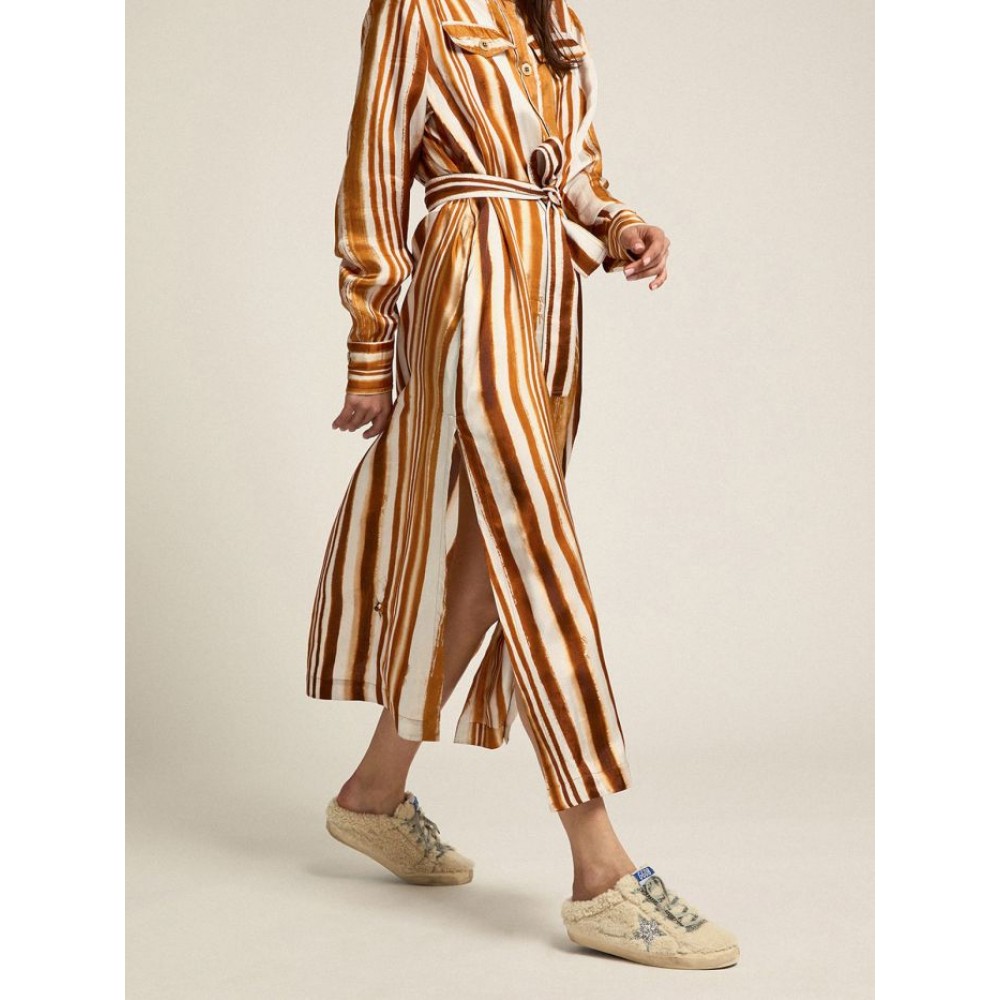 Our iconic sneakers in the new sabot version: these Super-Star sneakers feature an upper in soft natural white shearling embellished with a silver glitter star. The ice-gray laces with contrasting black logo complete the look.